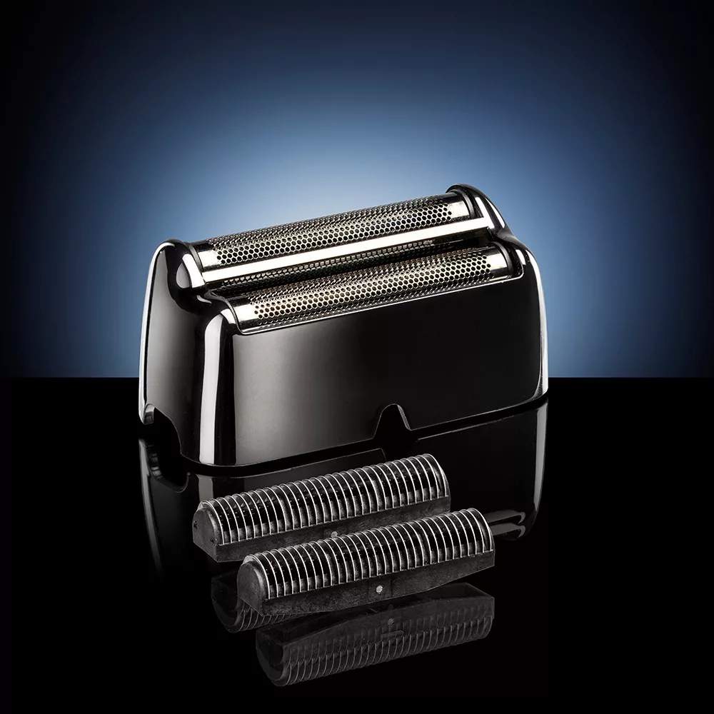 A BaBylissPRO UVFOIL02 – FXLFS2E UV double fóliás borotvához készült fekete titán cserefólia és penge szett biztosítja a maximális higiéniai és borotválkozási teljesítményt. A prémium minőségű, fekete titán dupla fóliák és a hozzájuk tartozó penge precíz, ultra sima borotválkozást nyújtanak a nyakon, az arcon és a hajvonal körül.