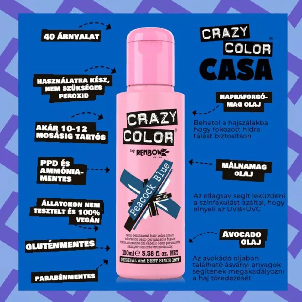 A Crazy Color hajszínező krém a világ egyik legikonikusabb hajszínező márkája, amely több mint 40 éve hódít a fodrászok és a trendkövetők körében. Krémes állagának és egyszerű használatának köszönhetően bárki könnyedén elérheti az élénk, vibráló hajszínt, akár otthon is.
