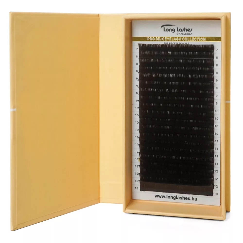20 soros Pro Silk Collection selyem szempillák, a legkiválóbb minőségű ultra puha koreai PBT anyagból. Egyedi kérésünk alapján félfényes bevonattal rendelkeznek, mellyel természetes hatású végeredmény érhető el. A Pro Silk kollekció darabjai gazdaságos, 20 soros kiszerelésben készülnek emellett az alumínium szempilla csíkoknak köszönhetően könnyen ragasztható többszöri alkalommal bármely felületre.