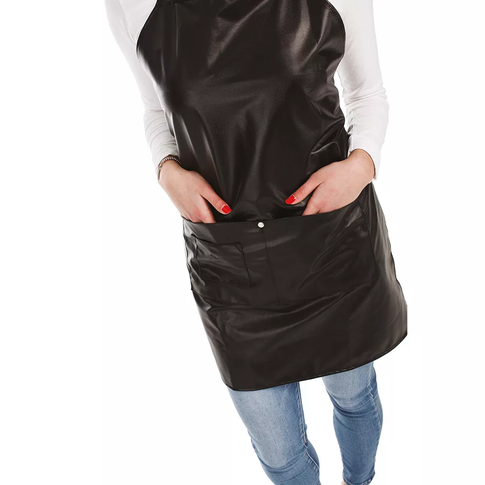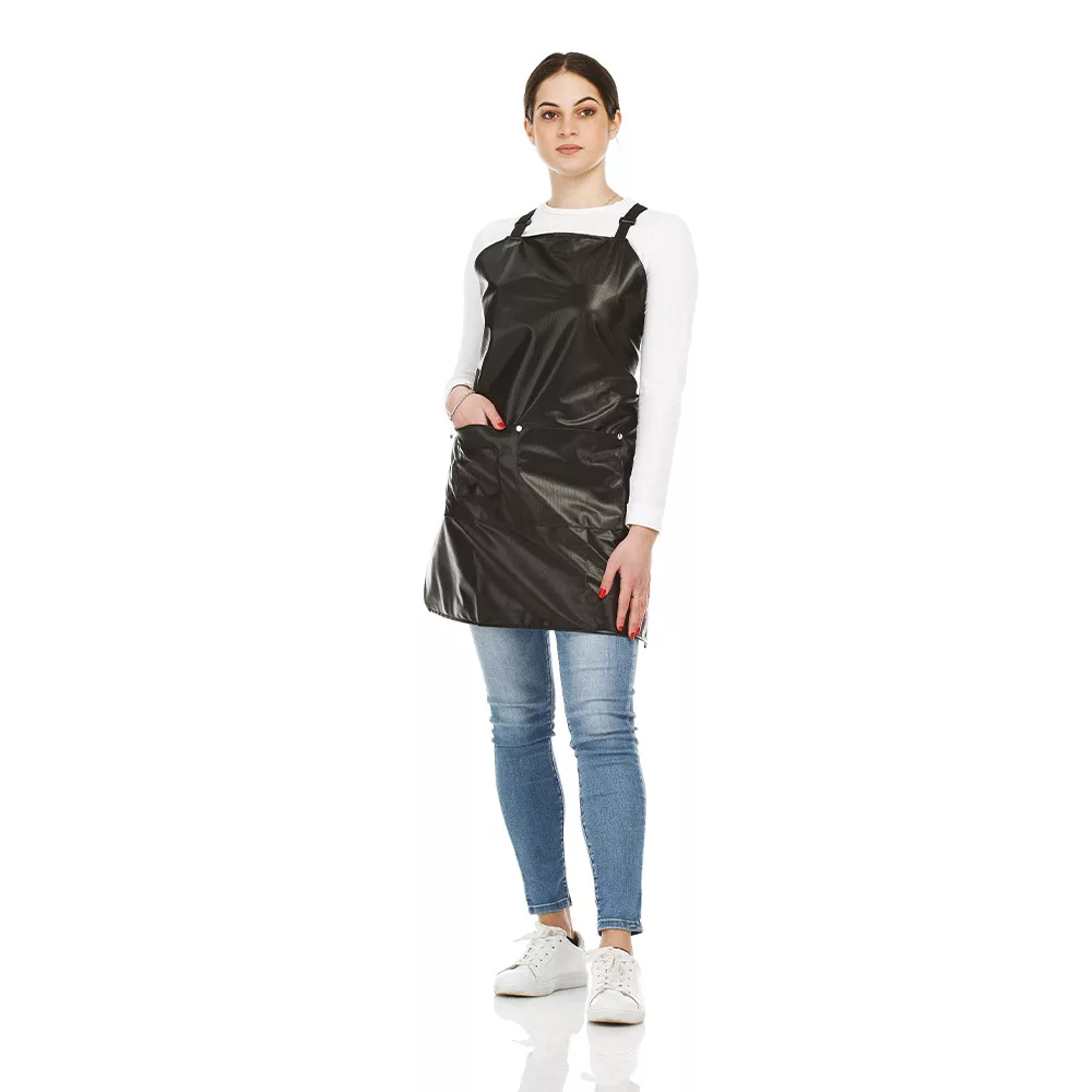 Fodrász munka kötény. Kényelmes, fekete színű, erős, lemosható 100% poliészter.
