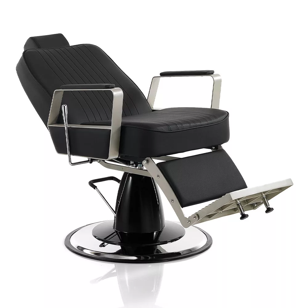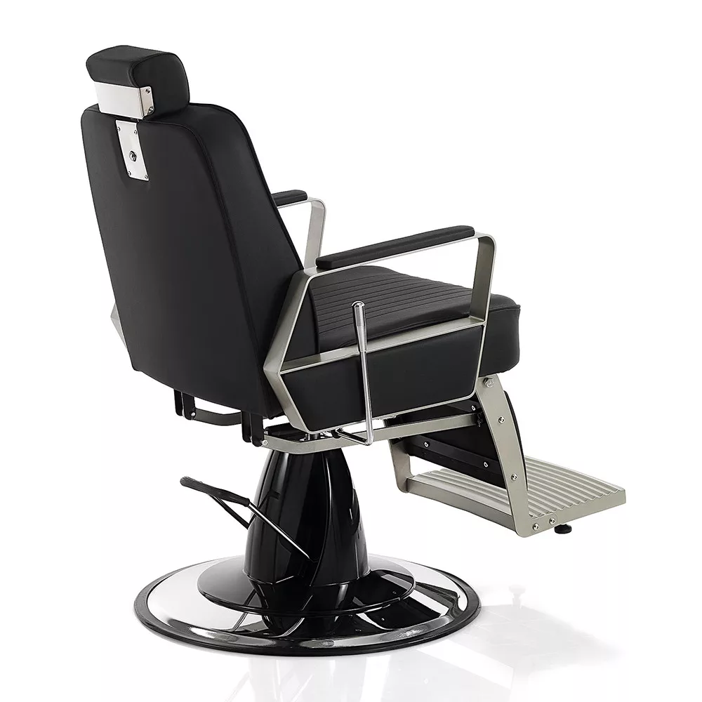 A Hair Graffiti elegáns és nagyszerű barber szék, dönthető háttámlával, lábtartóval és állítható fejtámlával, fekete műbör kárpitozással áll rendelkezésre.
