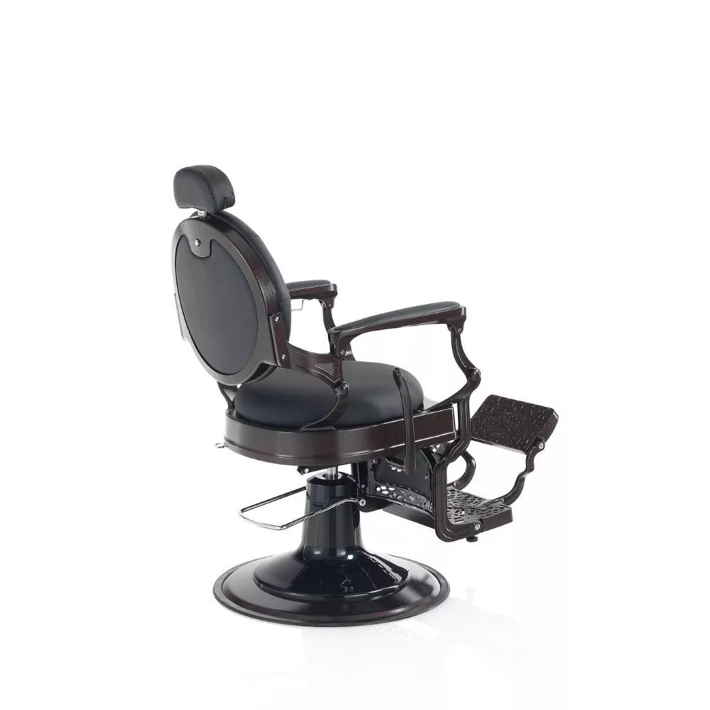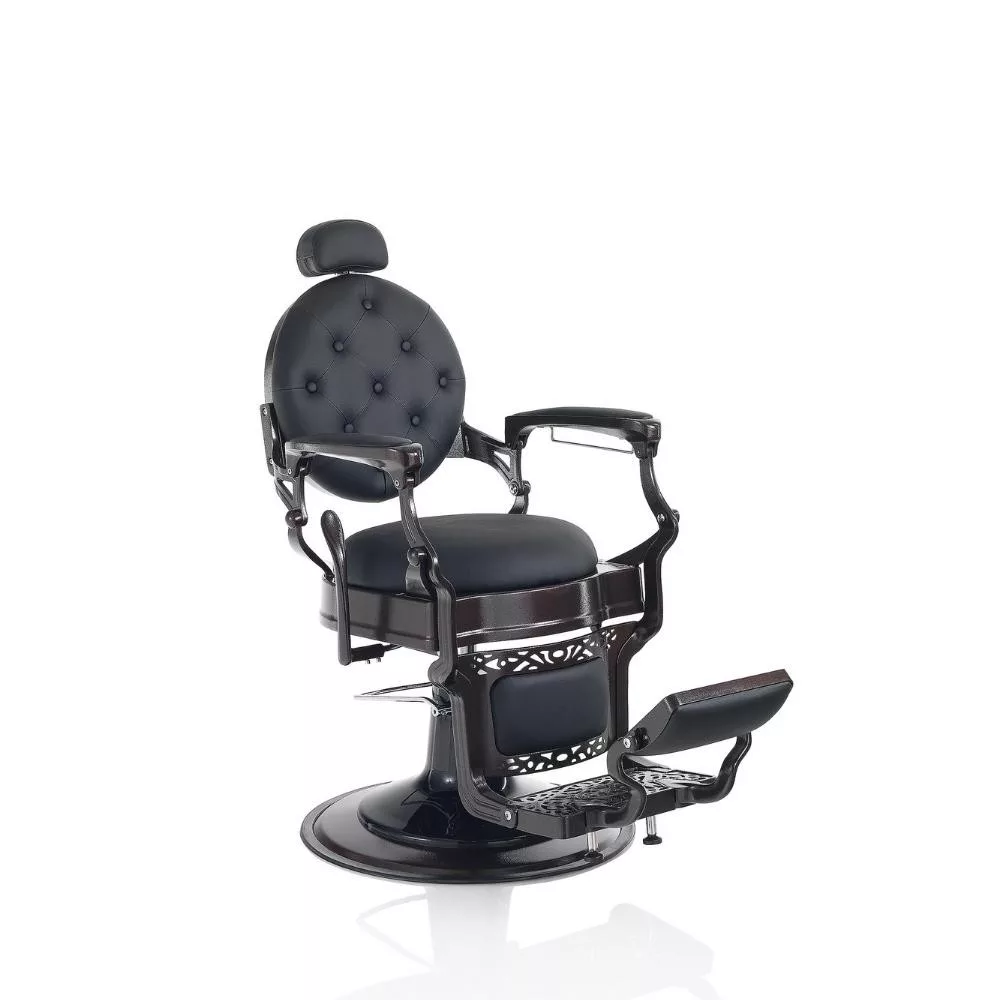 A Hair Custom Roadster elegáns és nagyszerű barber szék, dönthető és állítható háttámlával, kárpitozott lábtartóval és állítható fejtámlával, fekete műbőr borítással. Fekete színével és krómozott keretével tekintélyt parancsoló, királyi hangulatot idéz a barber szalonodba.