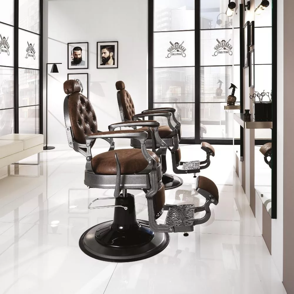 A Hair Custom Roadster elegáns és nagyszerű barber szék, dönthető és állítható háttámlával, kárpitozott lábtartóval és állítható fejtámlával, barna műbőr borítással. Barna színével és krómozott keretével tekintélyt parancsoló, királyi hangulatot idéz a barber szalonodba.