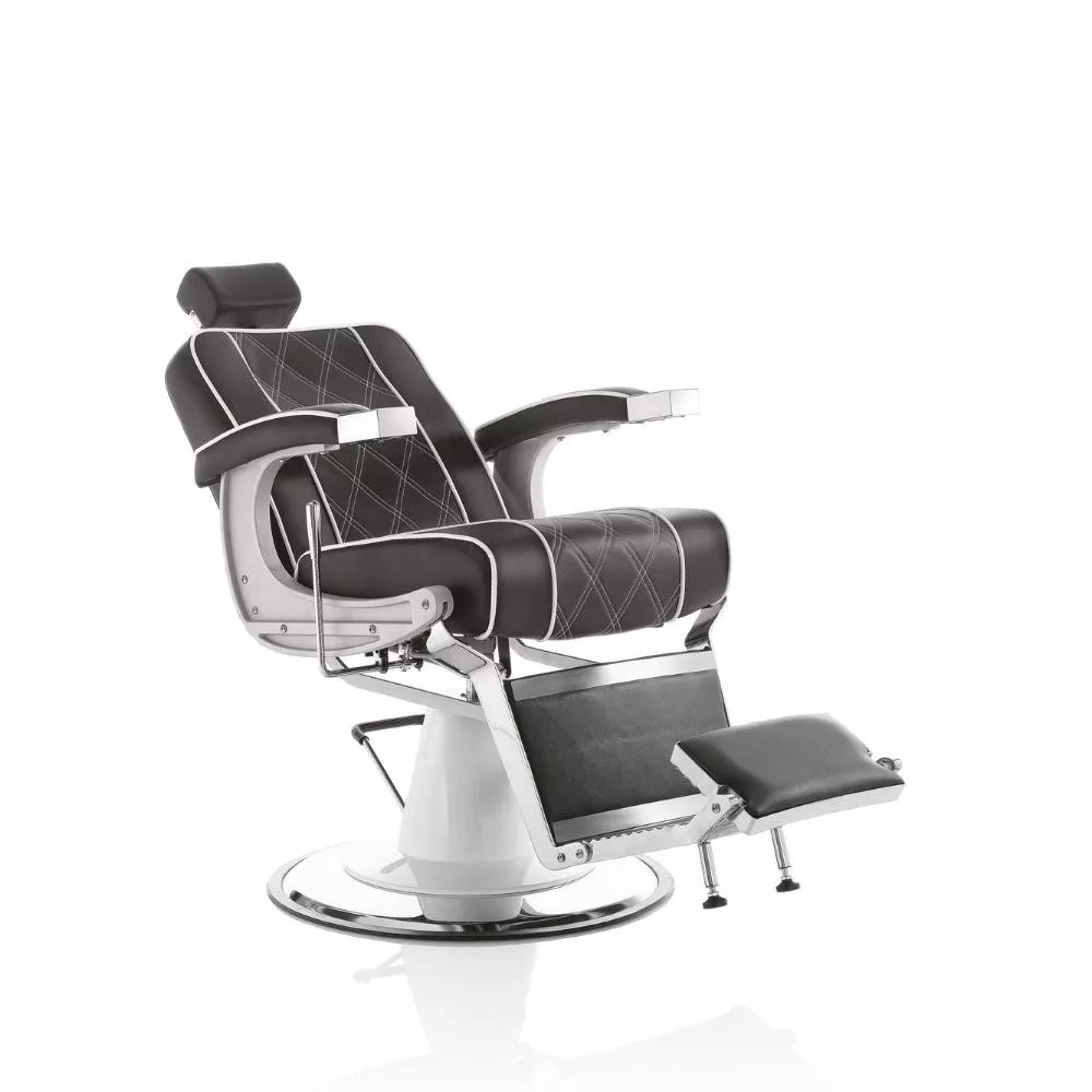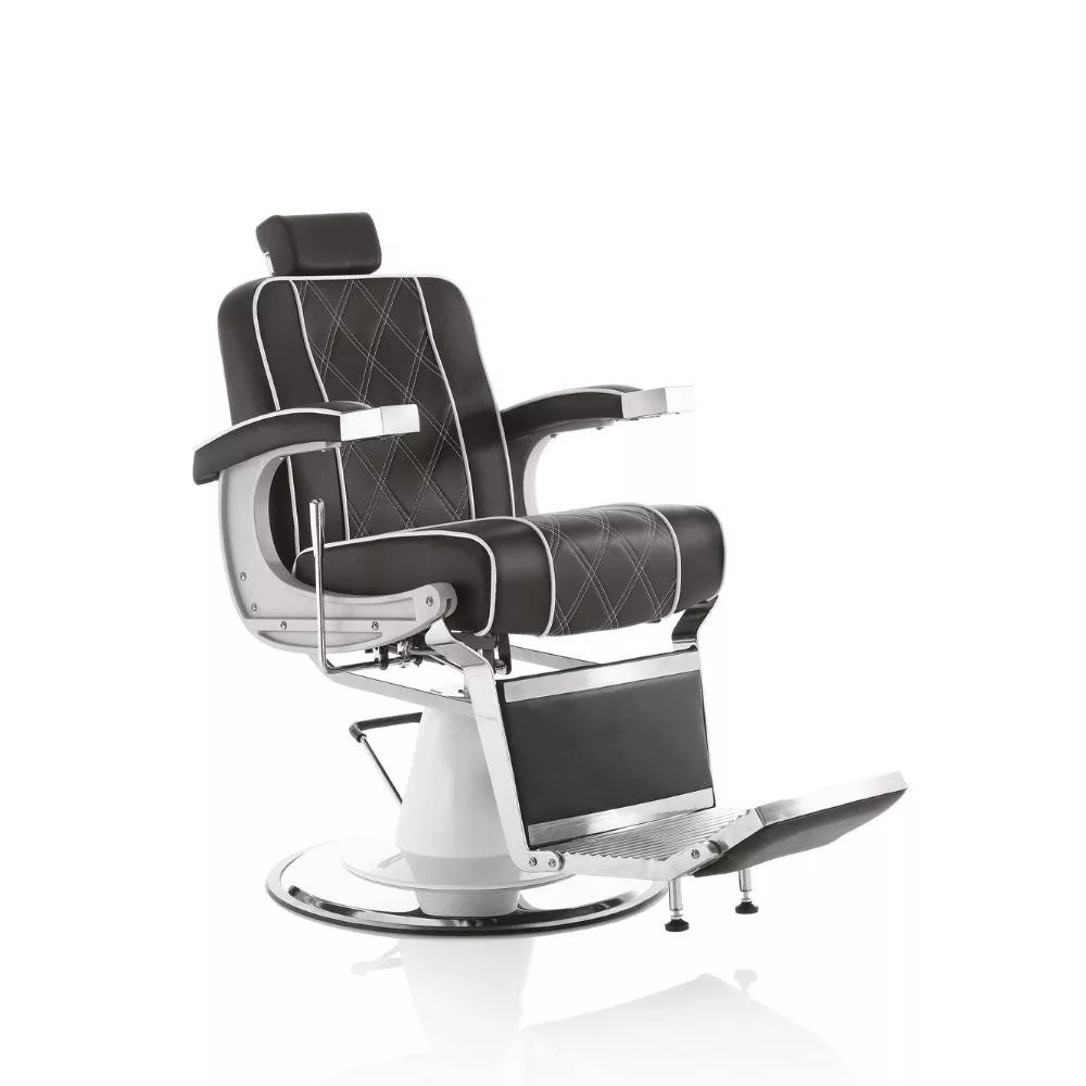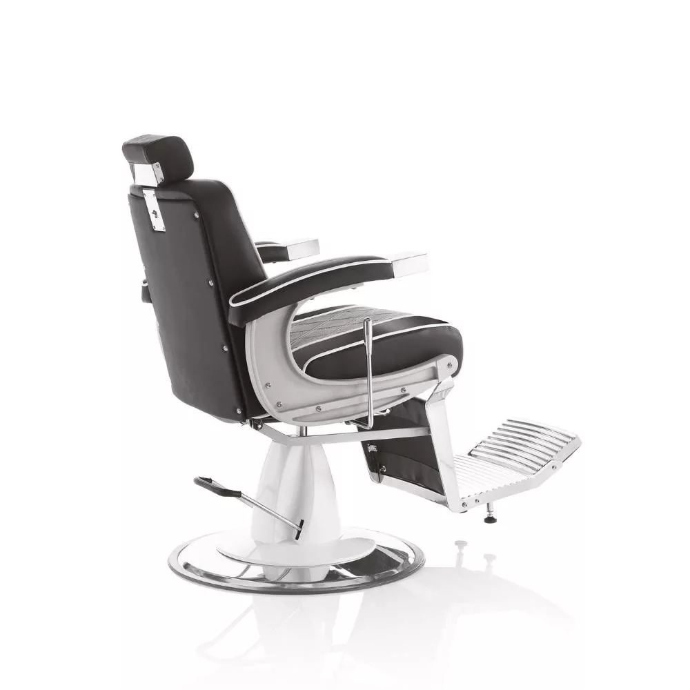 A Hair Granada elegáns és nagyszerű barber szék, dönthető és állítható háttámlával, kárpitozott lábtartóval és állítható fejtámlával, fekete öko műbőr borítással áll rendelkezésre. Fekete/fehér színével retro hangulatot idéz a barber szalonodba.
