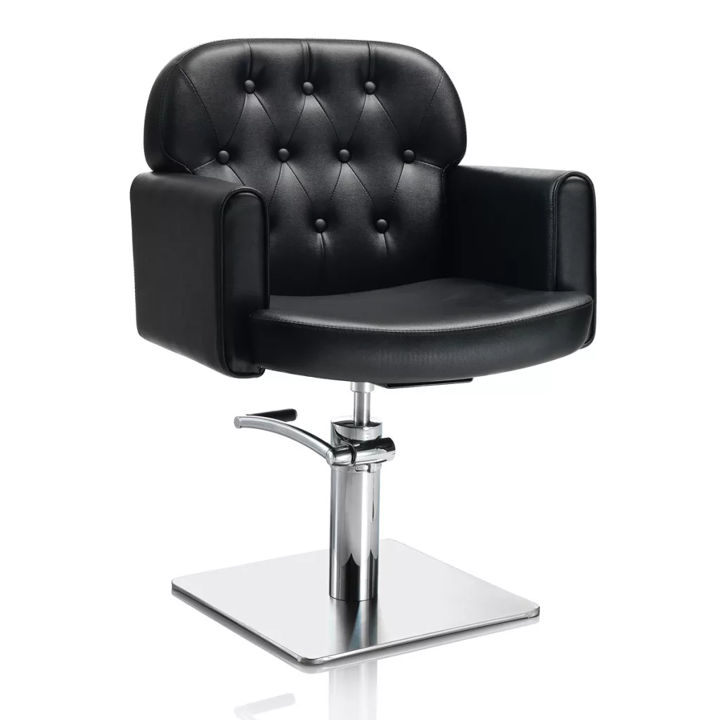 A Hair Liberty fodrász szék egyedi kialakításának köszönhetően nagy háttámlája van, jellegzetes gömbölyítéssel és a székhez hasonló anyaggal készített gombokkal. A Hair Liberty fodrász szék tökéletes minden fodrász szalon számára, amely a kifinomultság érzetét és formavilágát akarja létrehozni. Négyzet alakú forgatható talppal, hidraulikus pumpával és fékkel rendelkezik.