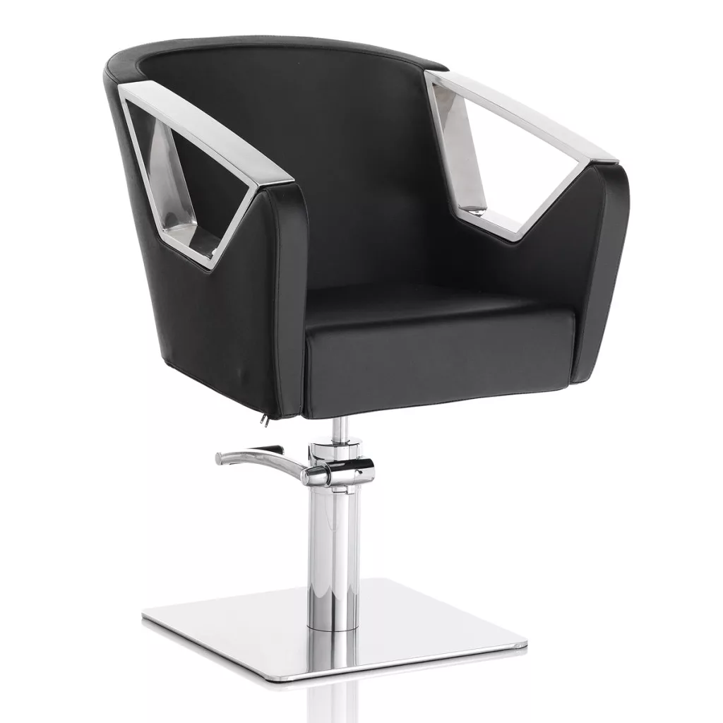 A Hair Astra szék kifinomult megjelenésű fodrász szék. Elegáns, könnyen tisztítható fekete műbőr kárpitozással, krómozott talppal, hidraulikus pumpával és fékkel rendelkezik. Tervezése miatt ez az elegáns, kifinomult fodrász szék a fodrász szalon központi eleme lehet.