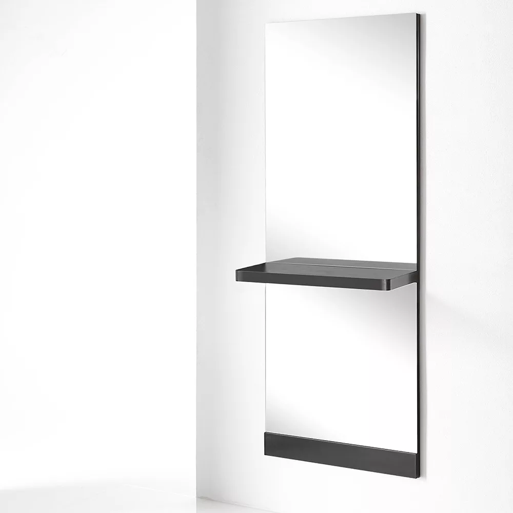 A Luce fodrász tükrös munkafal tükrével és fekete polccával, letisztult, modern formavilágot sugall a vendégeid felé. A tükör egy praktikus polccal rendelkezik.