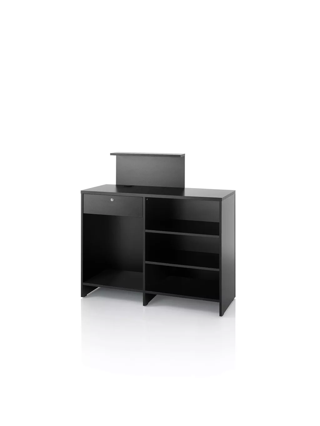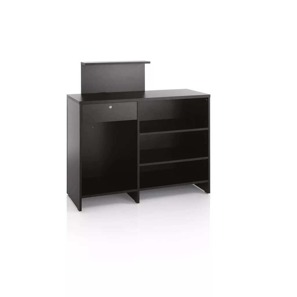 Vista fekete recepciós pult. Praktikus kialakítás, esztétikus megjelenés.