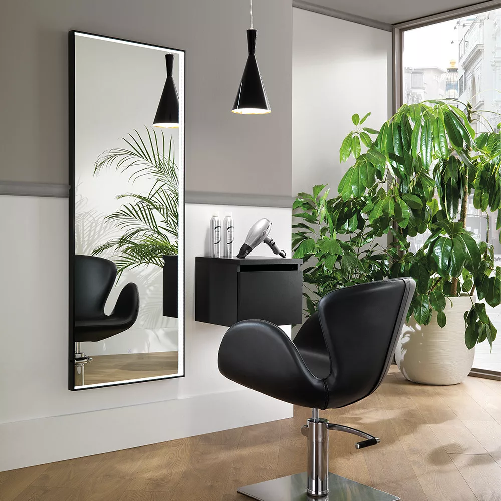 Cielo munkafal, LED fénnyel, melyen állíthatod a hőmérsékletet és a fényerősséget. Teljes tükrös kivitelben, ami edzett üvegből készült, a jó láthatóságért. Masszív alumínium kerettel rendelkezik. Egyszerű, letisztult dizájnjával a fodrász szalonod éke lesz.