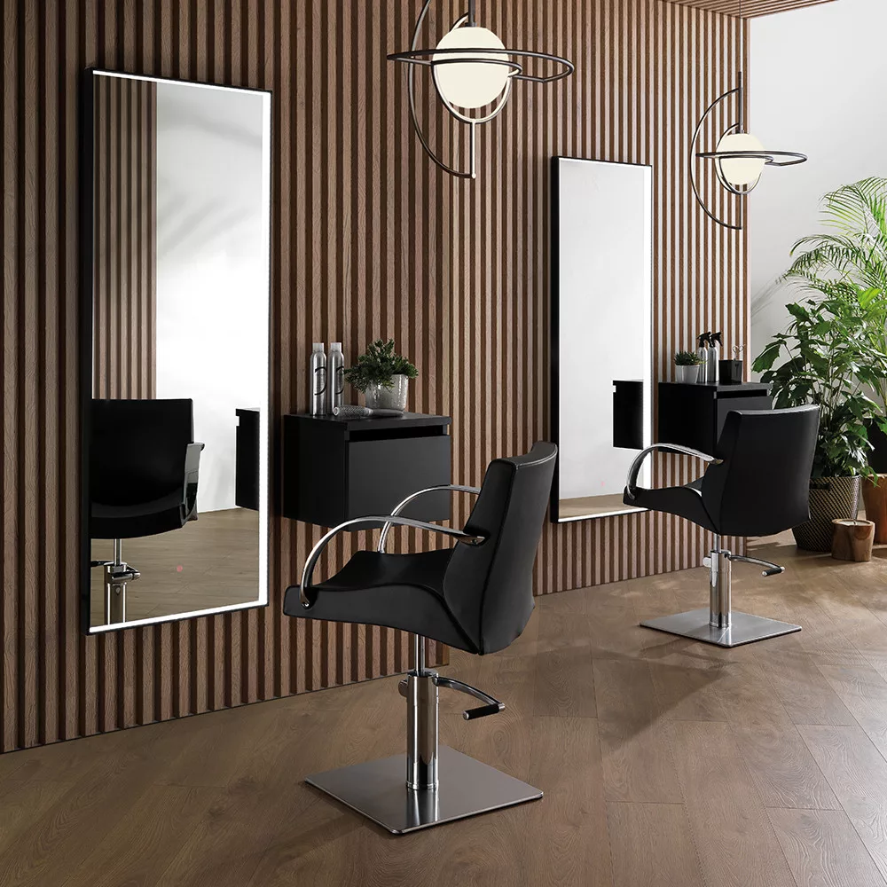 A Hair Moon fodrász szék poliuretán hab párnázással készült. Az ívelt fém karfa minimalista eleganciát kölcsönöz, így a szalonban egy csipetnyi előkelőséget biztosít. Csillag alakú forgatható talppal és hidraulikus pumpával és fékkel rendelkezik. A Moon fejmosóval kombinálható, hogy teljes összhang és harmónia uralkodjon szalonodban.