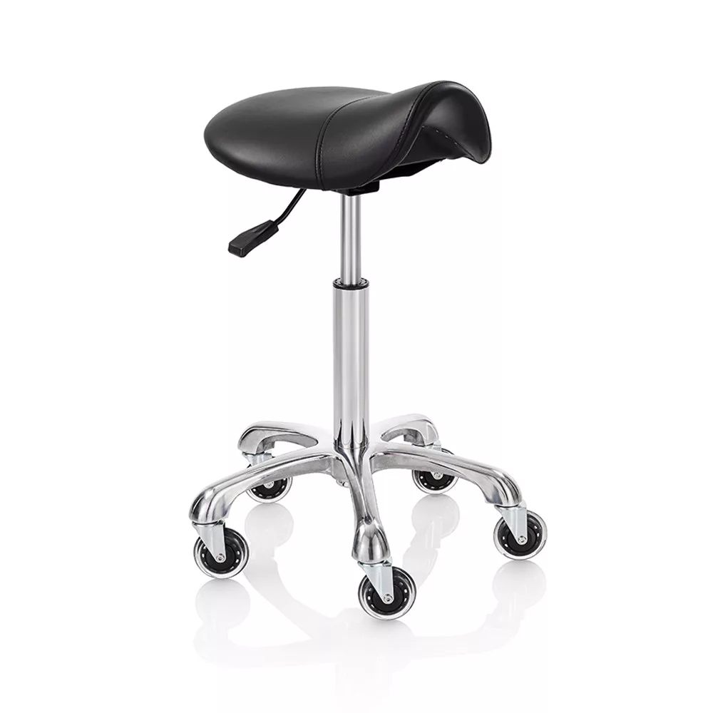 Roller Pro Elité Standard M nyeregzsámolyzsámoly fekete műbőr kárpittal, króm csillag talppal. Ez a forgózsámoly tökéletesen kiegészíti a szalon berendezését, vágáskor is használható, vagy csak a recepciós pultnál ülve; a szék kiválóan segíti a professzionális munkát a fodrászszalonokban és a szépségközpontokban egyaránt. Elegáns, ergonomikus és tartós – ideális választás forgalmas szalonokba.