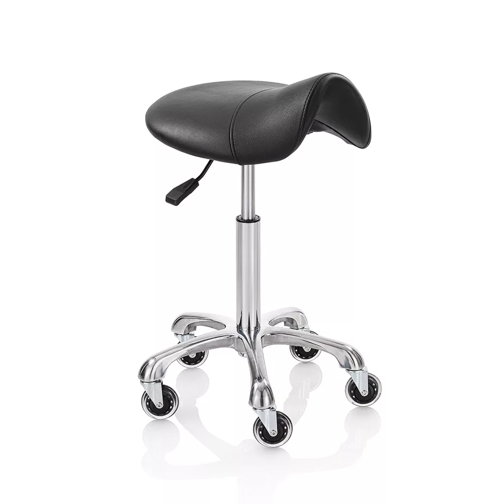 Roller Pro Elité Comfort M nyeregzsámolyzsámoly fekete műbőr kárpittal, króm csillag talppal. Ez a forgózsámoly tökéletesen kiegészíti a szalon berendezését, vágáskor is használható, vagy csak a recepciós pultnál ülve; a szék kiválóan segíti a professzionális munkát a fodrászszalonokban és a szépségközpontokban egyaránt. Elegáns, ergonomikus és tartós – ideális választás forgalmas szalonokba.