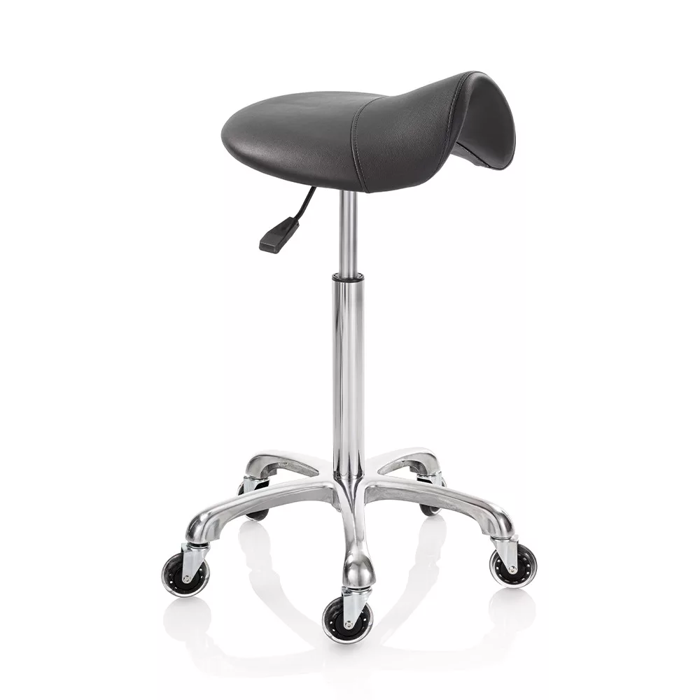 Roller Pro Elité Comfort L nyeregzsámolyzsámoly fekete műbőr kárpittal, króm csillag talppal. Ez a forgózsámoly tökéletesen kiegészíti a szalon berendezését, vágáskor is használható, vagy csak a recepciós pultnál ülve; a szék kiválóan segíti a professzionális munkát a fodrászszalonokban és a szépségközpontokban egyaránt. Elegáns, ergonomikus és tartós – ideális választás forgalmas szalonokba.