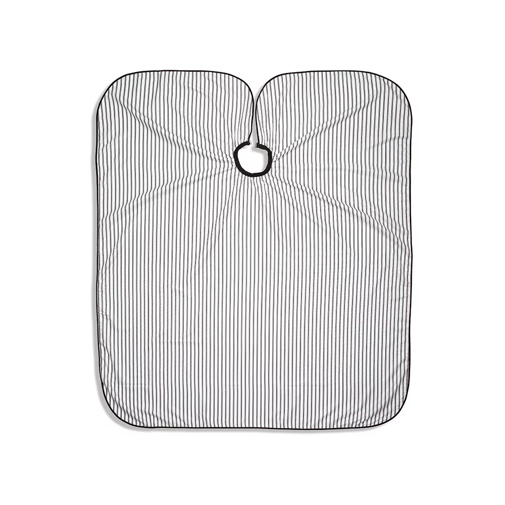 Vízálló, fekete-fehér csíkos poliészter beterítő kendő. Nagy méretű (140x160cm), nyak résznél állítható.
