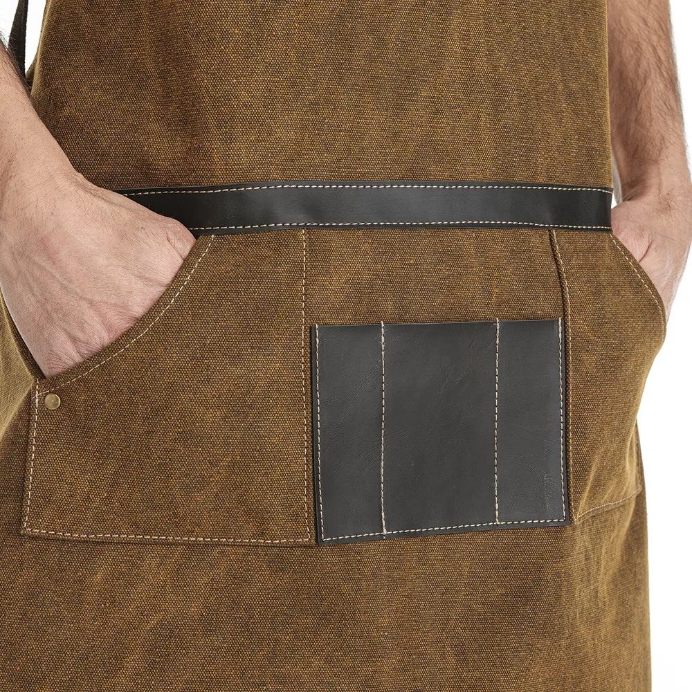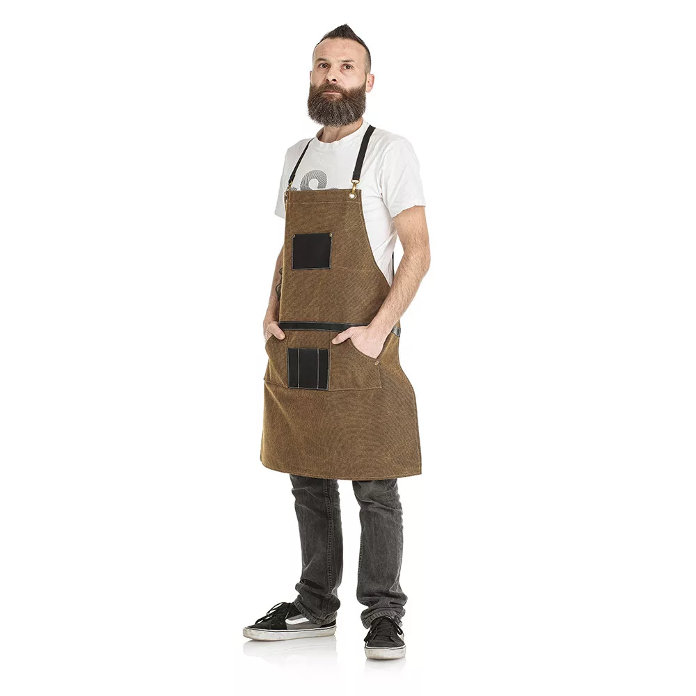 Vintage stílusú, barna, erős juta szövet, műbőr betétes borbélykötény! Állítható kantár rész, praktikus eszköz tartó zsebek, hogy mindig kéznél legyenek a „szerszámok”.