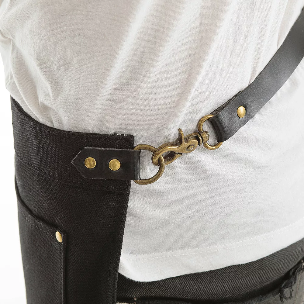 Vintage stílusú, fekete, erős juta szövet, műbőr betétes borbélykötény! Állítható kantár rész, praktikus eszköz tartó zsebek, hogy mindig kéznél legyenek a „szerszámok”.