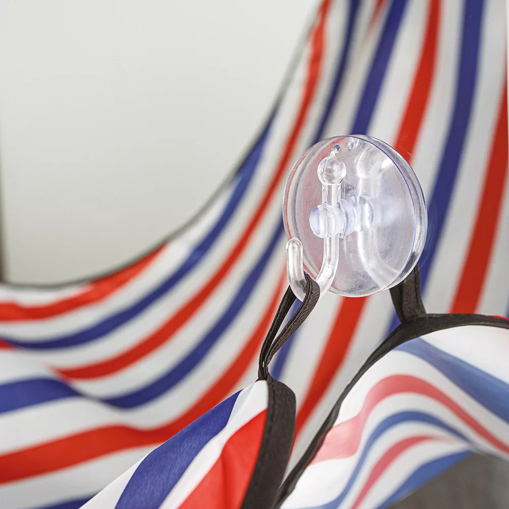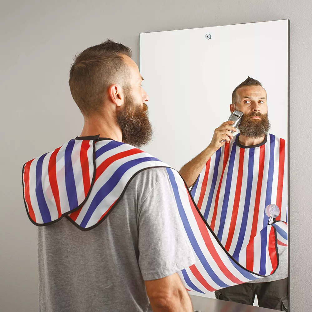 Férfi haj és szakáll vágó beterítő barber kendő. Nagy méretű (75x120cm), csíkos, tapadó koronggal és tépőzárral felszerelt.