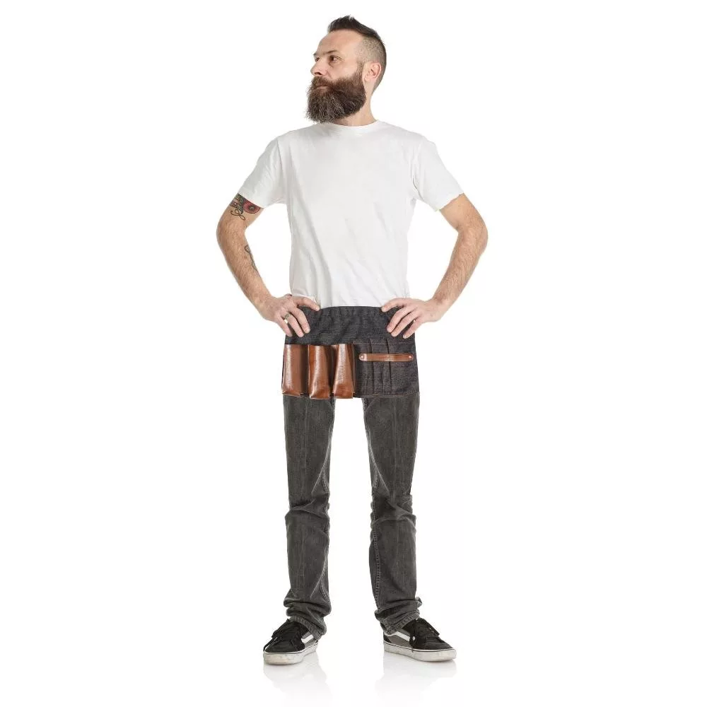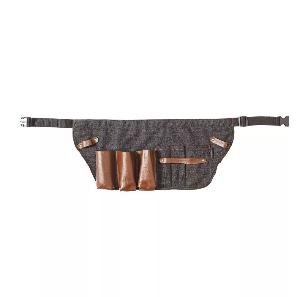 Eszköztartó övtáska, farmerből és textilbőrből, barna színben.